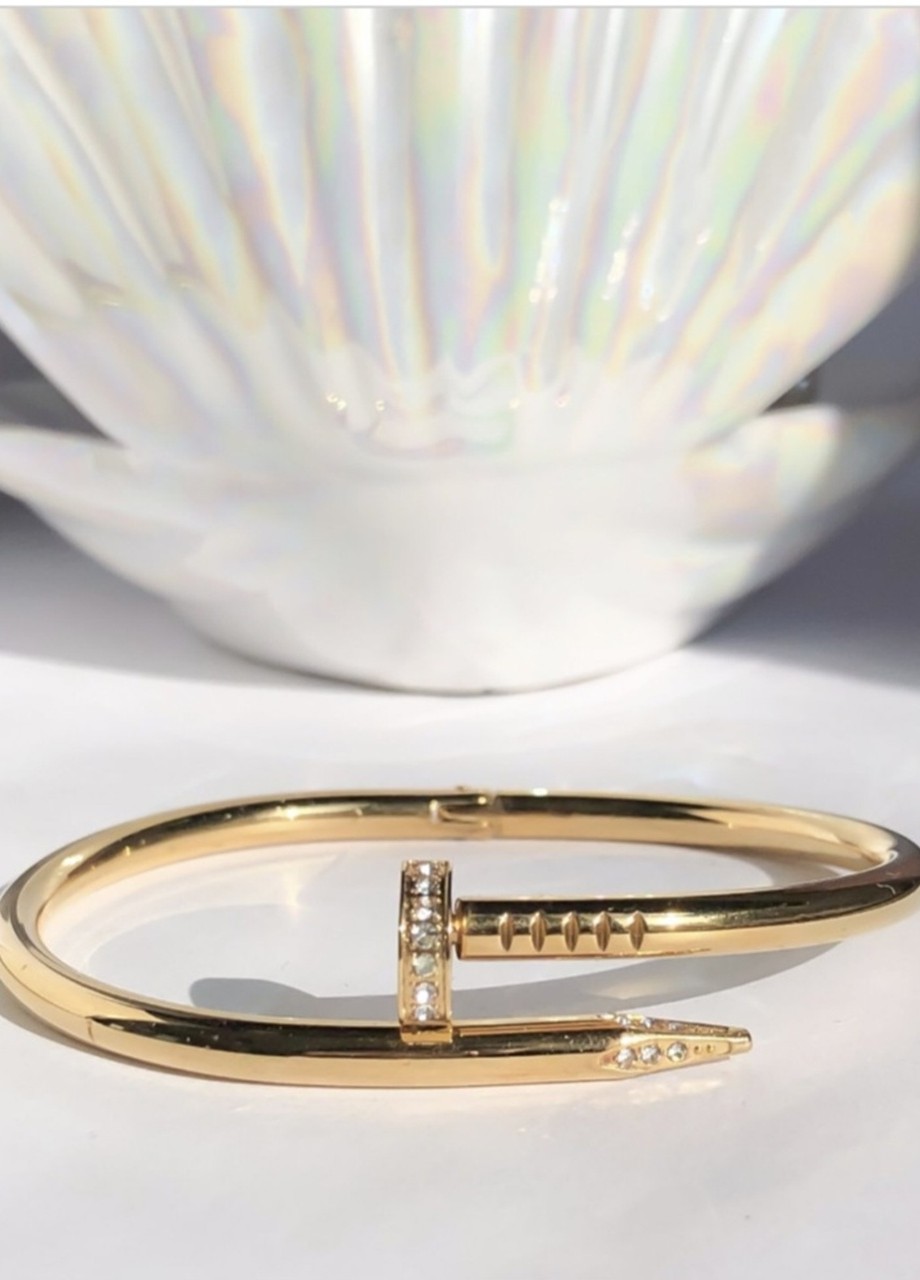 Елегантен аксесоар за всяка дама. Бъдете неотразими с гривна в златно, изработена от висококачествена медицинска стомана. Блестящото покритие и небрежни камъчета я правят изключително ефектна и привличаща вниманието. Подходяща както за ежедневна, така и за официална визия. Гривната може да се мокри без проблем, не потъмнява и не променя цвета си!