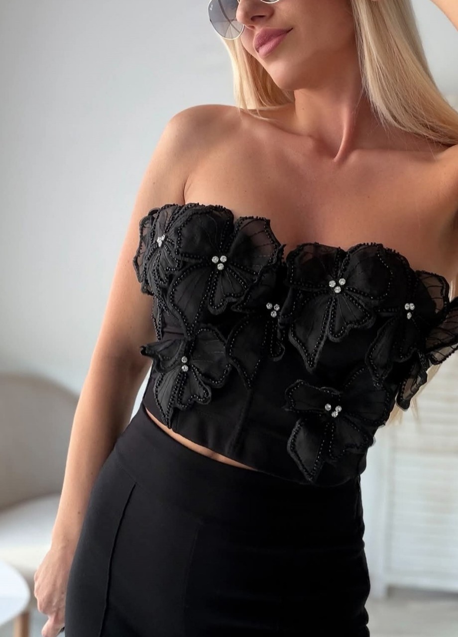 Бюстие черно с цветя