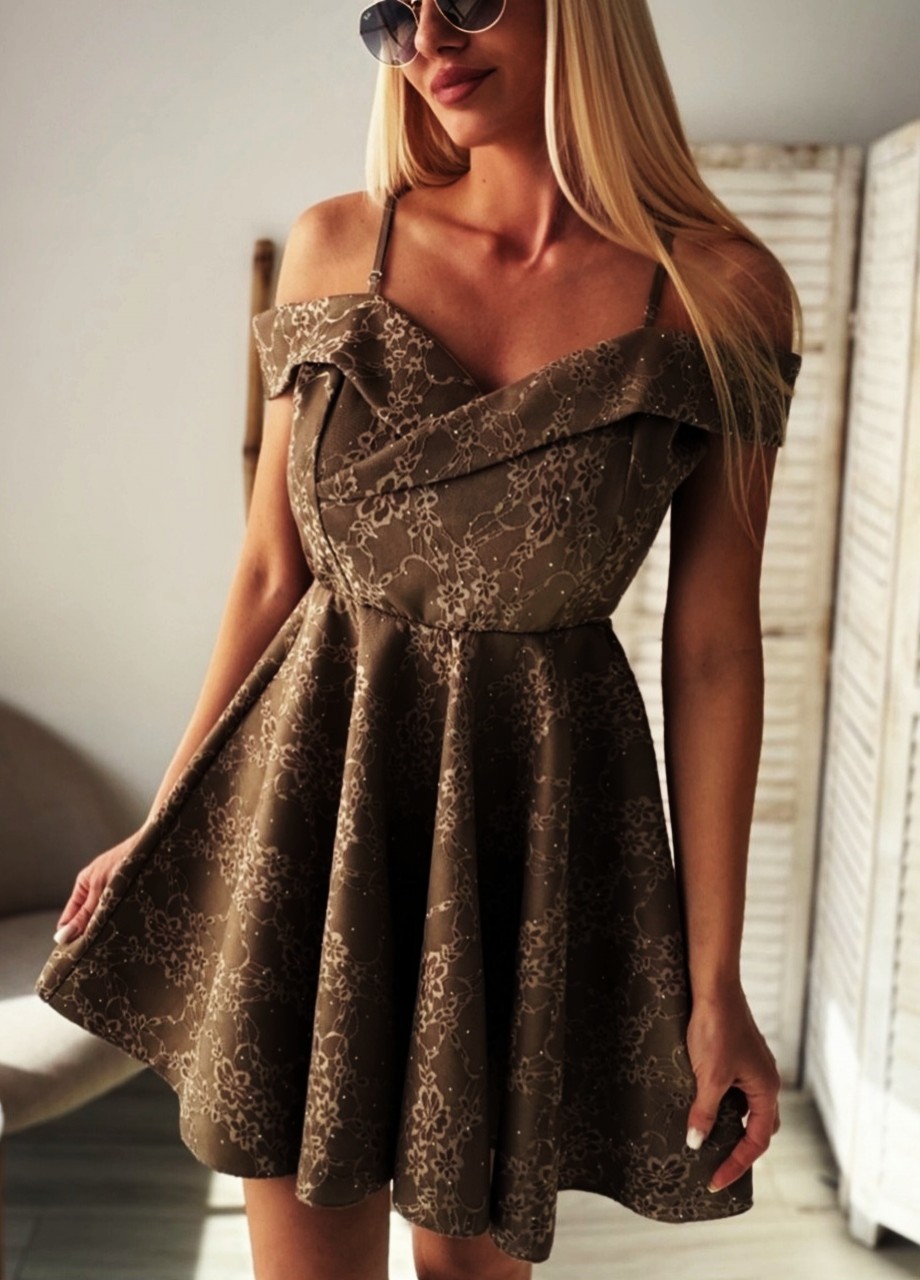 Разкроена рокля кафява с камъни
