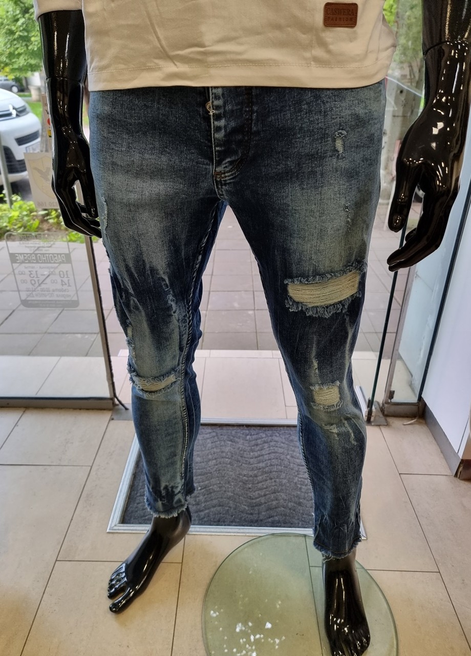 Детайли: еластична талия, захабен ефект, кръпки